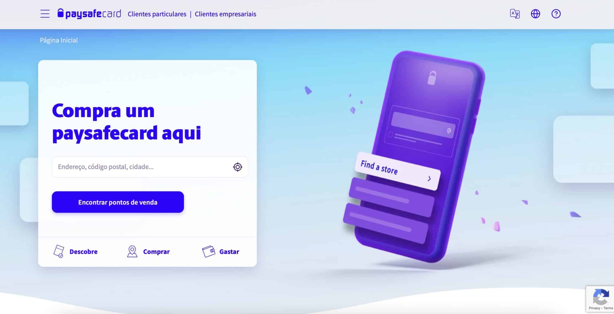 Existem milhares de pontos de venda espalhados por Portugal. Basta encontrar aquele mais perto para você no site oficial da Paysafecard ou por meio da aplicação móvel.