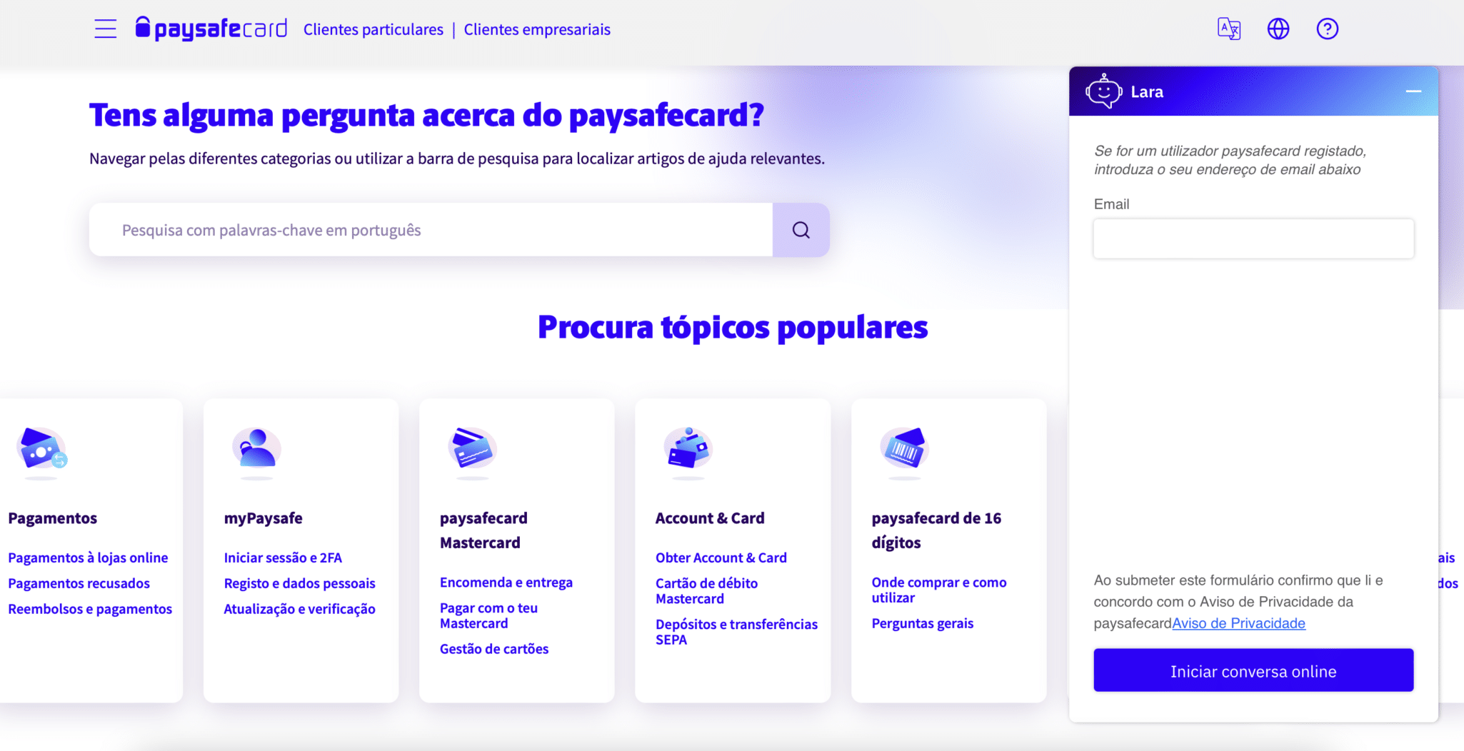 Suporte ao cliente do Paysafecard